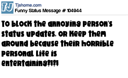 X To block the annoying person's status updates, or keep them around because their horrible personal life is entertaining?!?!