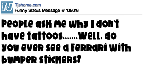 - # 183032 People usually ask me why I don't have any tattoos, I asked them " would you put a bumper sticker on your Ferrari ?