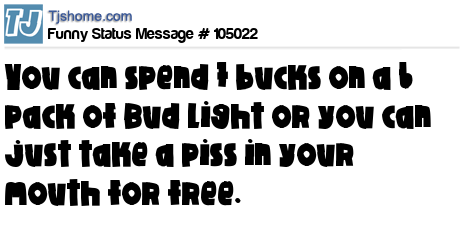 X is You can spend 7 bucks on a 6 pack of Bud Light or you can just take a piss in your mouth for free.