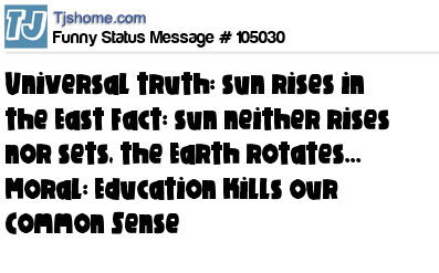 - # 74290 At school we learn that the sun rises in the east but in fact, the sun neither rises nor sets. Only earth rotates. Education spoils our common sense sometimes.