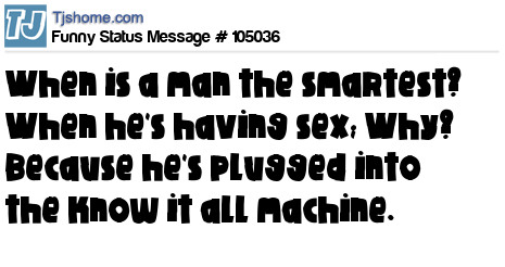 X is When is a man the smartest? When he's having sex; Why? Because he's plugged into the know it all machine.