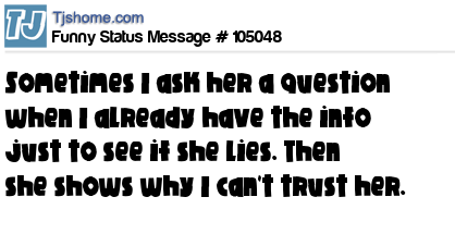 X Sometimes I ask her a question when I already have the info just to see if she lies. Then she shows why I can't trust her.