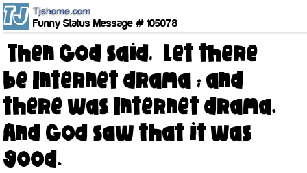 - # 105032 Then God said, “Let there be Internet drama”; and there was Internet drama. And God saw that it was good.