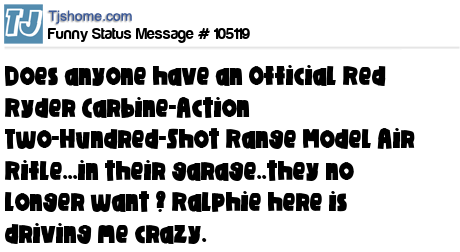 X Does anyone have an Official Red Ryder Carbine-Action Two-Hundred-Shot Range Model Air Rifle...in their garage..they no longer want ? Ralphie here is driving me crazy.