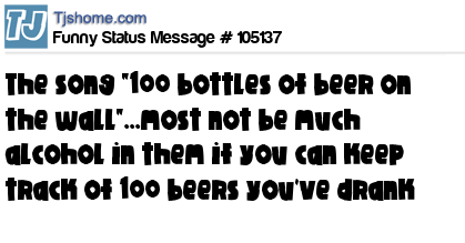 X says the song "100 bottles of beer on the wall"...most not be much alcohol in them if you can keep track of 100 beers you've drank