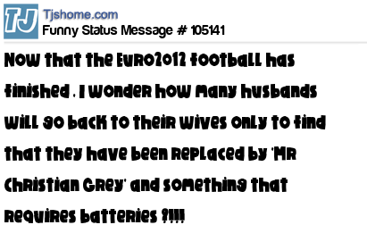 X Now that the Euro2012 football has finished , I wonder how many husbands will go back to their wives only to find that they have been replaced by `Mr Christian Grey` and something that requires batteries ?!!!