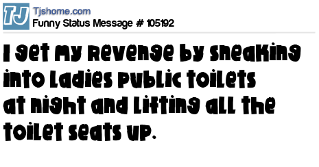 X says I get my revenge by sneaking into ladies public toilets at night and lifting all the toilet seats up.