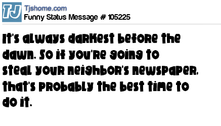 - # 157650 It's always the darkest before dawn. So if you are going to steal your neighbor's newspaper that's the best time to do it.