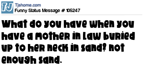 X what do you have when you have a mother in law buried up to her neck in sand? not enough sand.