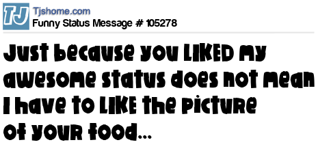 X says Just because you LIKED my awesome status does not mean I have to LIKE the picture of your food...