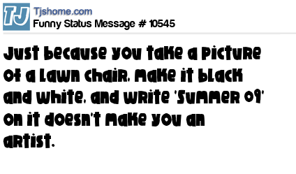 X says just because you take a picture of a lawn chair, make it black and white, and write 'Summer 09' on it doesn't make you an artist.