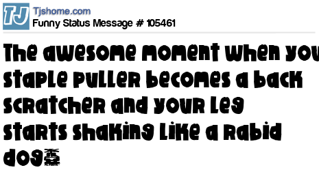X The awesome moment when your staple puller becomes a back scratcher and your leg starts shaking like a rabid dog~