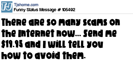 - # 208991 There are scams all over the internet! Send me just $19.95 and I'll show you how to avoid them!
