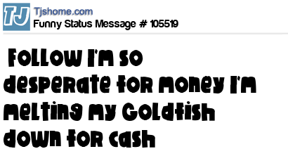 X Follow I'm so desperate for money I'm melting my Goldfish down for cash