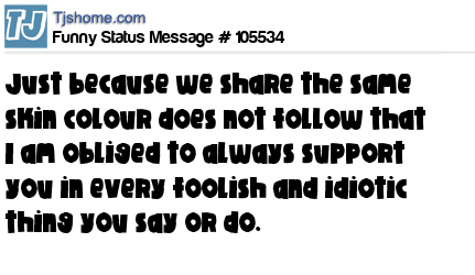 X says Just because we share the same skin colour does not follow that I am obliged to always support you in every foolish and idiotic thing you say or do.