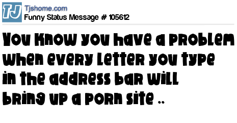 - # 68512 You know you've got a problem when every letter of the alphabet triggers a porn website in ur address bar smh
