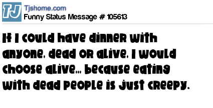 - # 141105 If I could have dinner with anyone either alive or dead I would totally choose dead. Because, more food for me then.