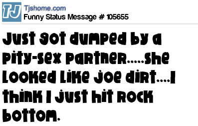 X is just got dumped by a pity-sex partner.....she looked like joe dirt....I think I just hit rock bottom.