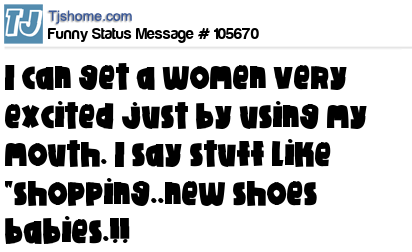 X I can get a women very excited just by using my mouth. I say stuff like "shopping..new shoes babies.!!