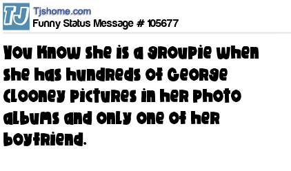 X says You know she is a groupie when she has hundreds of George Clooney pictures in her photo albums and only one of her boyfriend.