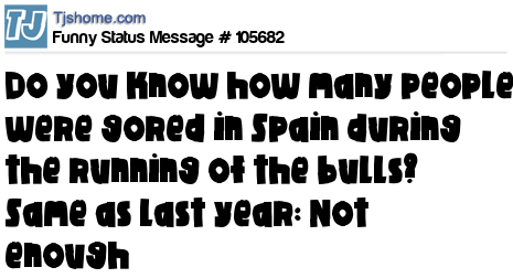 X says Do you know how many people were gored in Spain during the running of the bulls? Same as last year: Not enough