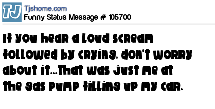 - # 50754 If any of you heard a loud, painful scream followed by hysterical weeping, don't worry about it...That was just me at the gas pump filling up my car.
