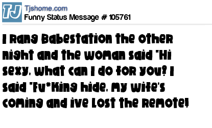 X I rang Babestation the other night and the woman said "Hi sexy, what can I do for you? I said "Fu*king hide, my wife's coming and ive lost the remote!