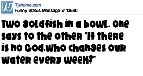 - # 90873 One goldfish says to the other, "If there's no God, who changes our water every week?"