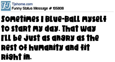 X Sometimes I Blue-Ball myself to start my day. That way I'll be just as angry as the rest of humanity and fit right in.