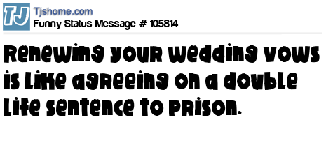 - # 44980 My wife and I have are talking about renewing our vows. Or as I like to call it, getting a double life sentence.