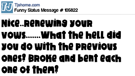 X is Nice..renewing your vows.......What the hell did you do with the previous ones? Broke and bent each one of them?