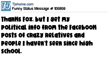 X is Thanks Fox, but I get my political info from the Facebook posts of crazy relatives and people I haven't seen since high school.