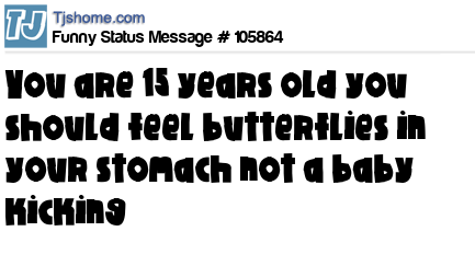 X You are 15 years old you should feel butterflies in your stomach not a baby kicking