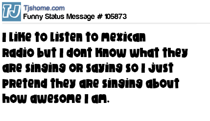 X I like to listen to mexican radio but I dont know what they are singing or saying so I just pretend they are singing about how awesome I am.