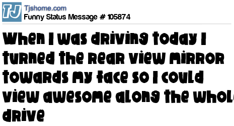X when I was driving today I turned the rear view mirror towards my face so I could view awesome along the whole drive