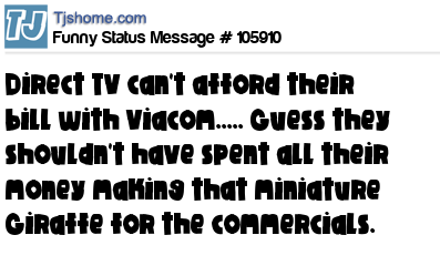 X Direct TV can't afford their bill with Viacom..... Guess they shouldn't have spent all their money making that miniature Giraffe for the commercials.