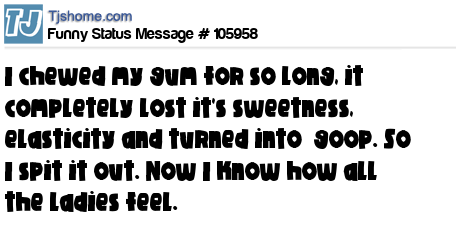 X says I chewed my gum for so long, it completely lost it's sweetness, elasticity and turned into goop. So I spit it out. Now I know how all the ladies feel.
