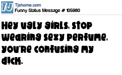 X says Hey ugly girls, stop wearing sexy perfume, you're confusing my d!ck.
