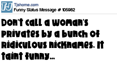 X says Don't call a woman's privates by a bunch of ridiculous nicknames. It taint funny…