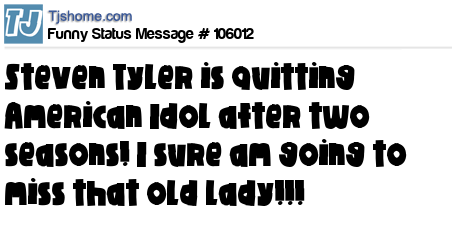 X is Steven Tyler is quitting American Idol after two seasons! I sure am going to miss that old lady!!!