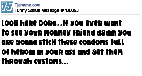 X says Look here Dora....If you ever want to see your monkey friend again you are gonna stick these condoms full of heroin in your ass and get them through customs....