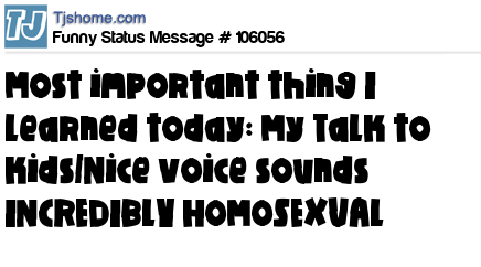 X is Most important thing I learned today: My Talk to kids/Nice voice sounds INCREDIBLY HOMOSEXUAL