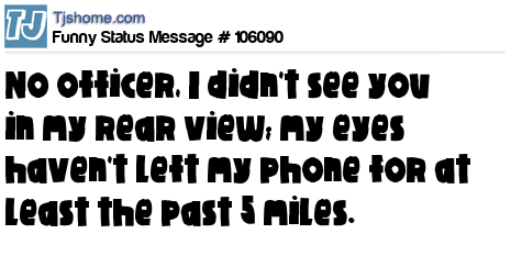X No officer, I didn't see you in my rear view; my eyes haven't left my phone for at least the past 5 miles.