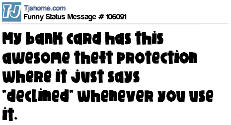 - # 207340 My new credit card has this awesome theft protection where it just says “declined” whenever you use it.