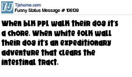 X is When blk ppl walk their dog it's a chore. When white folk wall their dog it's an expeditionary adventure that clears the intestinal tract.