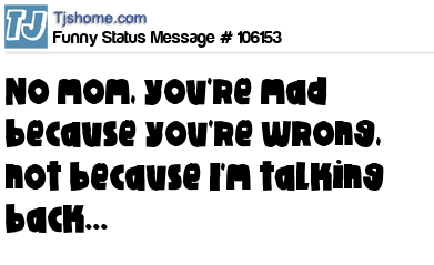 X is No mom, you're mad because you're wrong, not because I'm talking back...