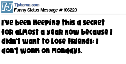 X says I've been keeping this a secret for almost a year now because I didn't want to lose friends: I don't work on Mondays.