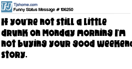 X is If you're not still a little drunk on Monday morning I'm not buying your good weekend story.