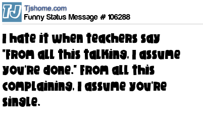 X is I hate it when teachers say "From all this talking, I assume you're done." From all this complaining, I assume you're single.