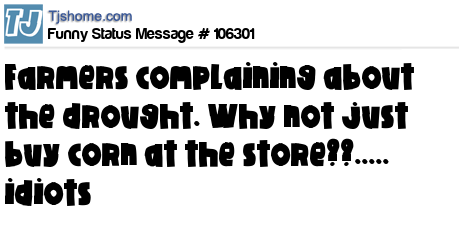 X Farmers complaining about the drought. Why not just buy corn at the store??..... idiots